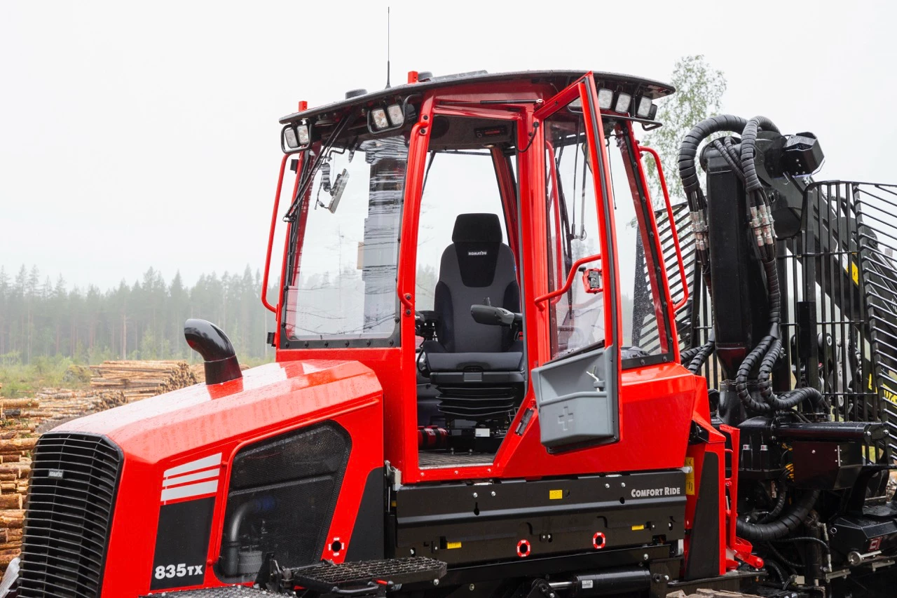 Forwarder Komatsu 835TX dzięki swojej lekkiej budowie, zwrotności i wytrzymałości jest idealny do trzebieży. To lekki forwarder o ładowności aż do 11 ton, z dużym prześwitem i z oszczędnym silnikiem, co minimalizuje jego wpływ na środowisko. Maszyna może być wyposażona m.in. w funkcję Smart Crane, która zapewnia operatporowi łatwiejszą obsługę żurawia, zmniejsza obciążenie fizyczne i podnosi wydajność. Z kolei funkcja Comfort Ride skutecznie eliminuje wstrząsy i niekorzystne wibracje, zapewniając operatorowi ergonomiczne środowisko pracy.