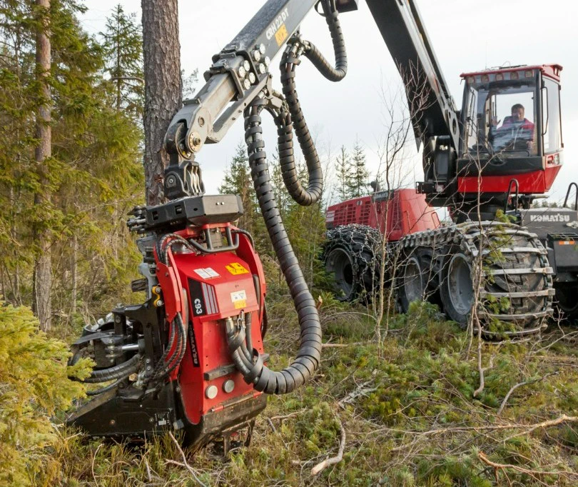 Głowica Komatsu C93 jest mocna i wydajna, uniwersalna do trzebieży. Dzięki wprowadzonym rozwiązaniom technicznym zapewnia dodatkowe korzyści. Ulepszony system tnący Constant Cut inteligentnie steruje silnikiem piły, zapewnia stałą i wydajną prędkość silnika piły przez cały cykl cięcia. To z kolei zapewnia sprawne cięcie i ogranicza problemy z pękaniem. System smarowania Eco-GLS (w opcji) zmniejsza zużycie smaru oraz paliwa, eliminuje mgłę olejową i minimalizuje wpływ na środowisko. Obsługa techniczna głowicy jest bezpieczna i prosta, a jej konstrukacja ułatwia dostęp do zespołu zaworów oraz głównych punktów smarowania.